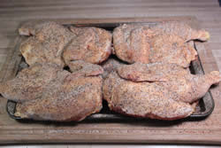 The chicken is now ready to smoke so leave the chicken halves right there while you go get things set up.