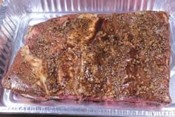 - Finally, sprinkle a good layer of my Texas rub onto the top meat side and let it sit there for a few minutes and mingle with the other ingredients.