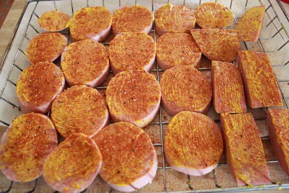 Sprinkle Jeff's original rub onto the bologna, making sure to get it all over the top, sides and bottom.