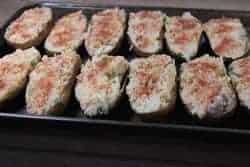 Place the stuffed potato halves onto a cookie sheet and give it a good sprinkling of my original rub. Don't be stingy with the flavor!