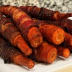 Sweet, smoky, and irresistibly savory, these smoked bacon wrapped honey glazed carrots are the ultimate side dish for any backyard party or get together.